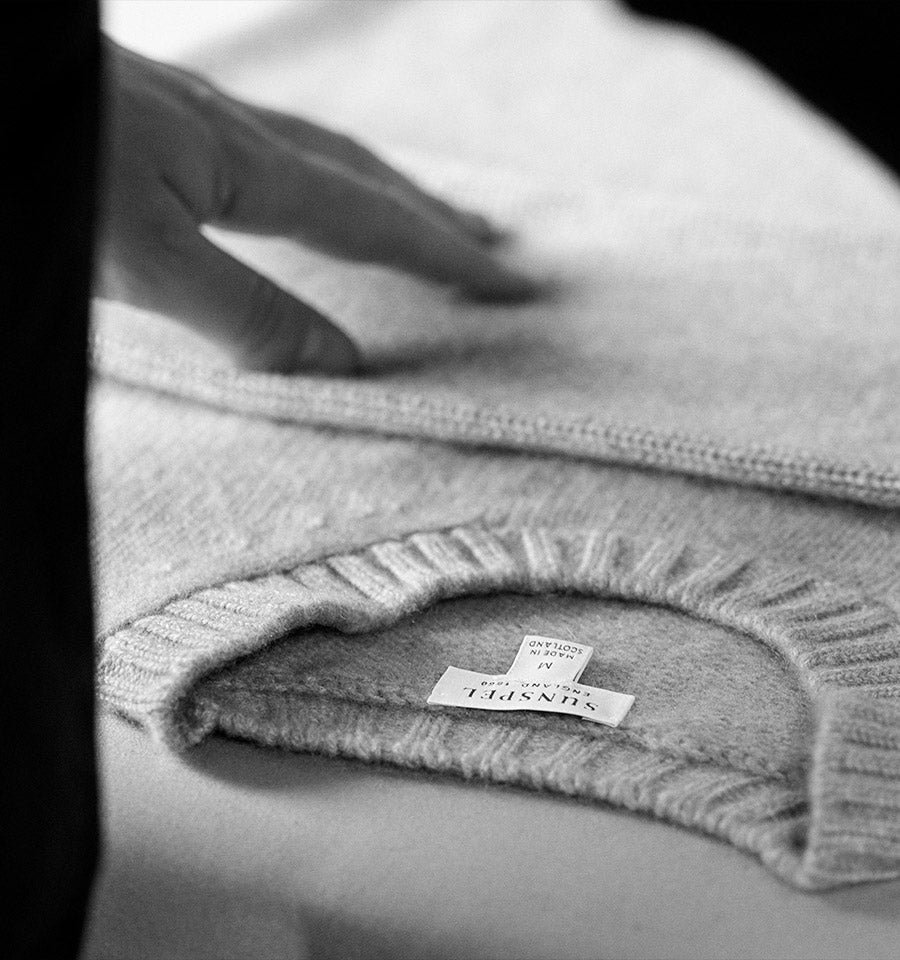 We’ve been perfecting the craft of cashmere for over 150 years, drawing on British expertise to refine every aspect of our knits. Sourced from nomadic Mongolian herders, we select the finest Grade A, white cashmere hairs. These are spun on the banks of Loch Leven by one of Scotland’s oldest spinners. The yarn is washed in naturally soft spring water, opening the fibres and leaving a beautifully smooth, light finish. The final garment is knitted by specialists nearby in Hawick, the historic heart of the British cashmere industry, resulting in a timeless piece of knitwear that’s unrivalled for pure comfort.